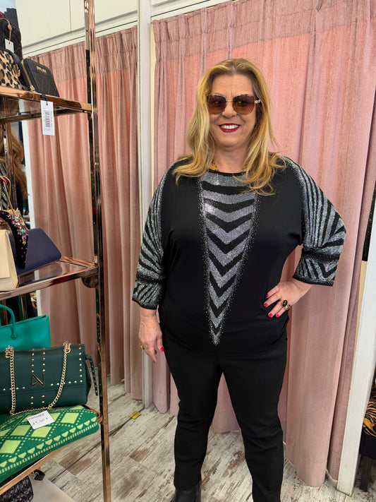 ΈκπτωσηΜπλούζα με ασημί και μαύρα στρας