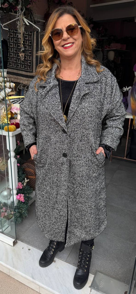 ΕξαντλήθηκεΠαλτό γκρι ασπρόμαυρο με σχέδιο ψαροκόκκαλο