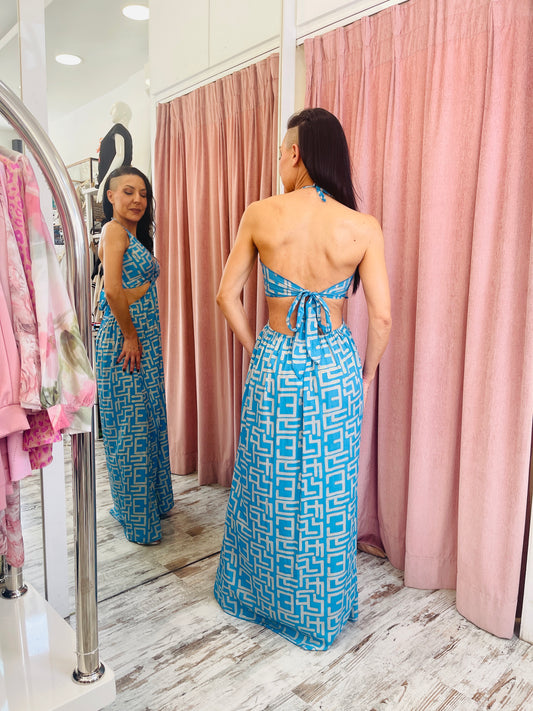 Καλοκαιρινό Φόρεμα με Ανοίγματα & Ιδιαίτερο Ντεσέν Γαλάζιο-3