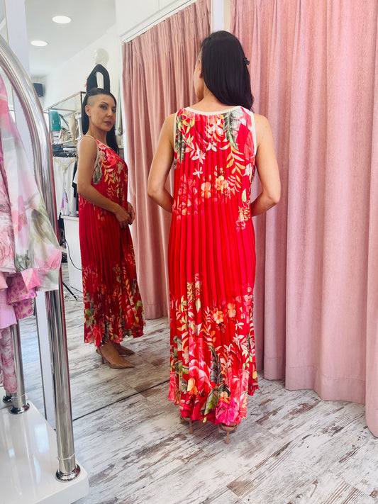 Floral Πλισέ Φόρεμα Κόκκινο-3
