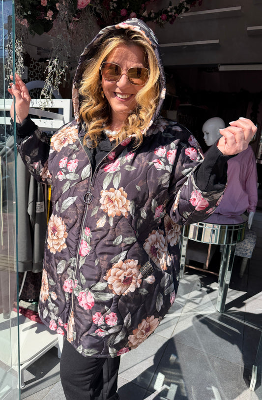 Γυναικείο Καπιτονέ Μπουφάν με Φλοράλ Σχέδιο & Κουκούλα – Μοντέρνο Jacket
