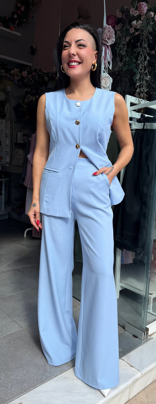 ΕξαντλήθηκεΣετ μπλε γιλέκο με κουμπια και παντελόνι-1