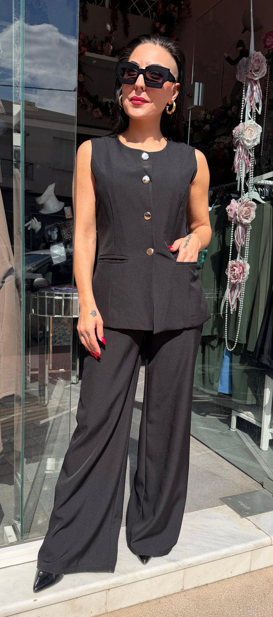 Σετ black γιλέκο με κουμπια και παντελόνι-5