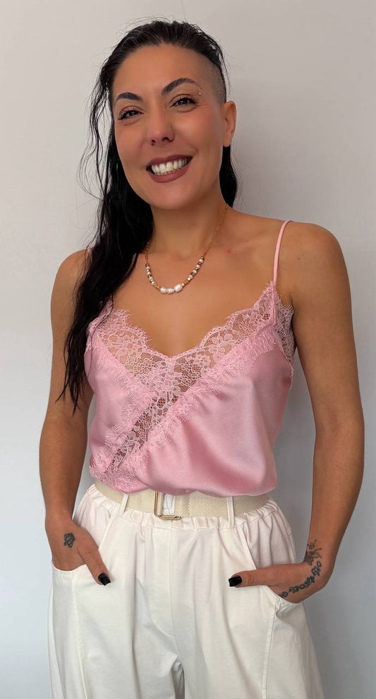 Γυναικείο Satin Top με Δαντέλα Ροζ-8