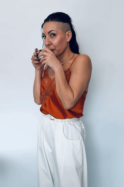 Γυναικείο Satin Top με Δαντέλα Κεραμιδί-4