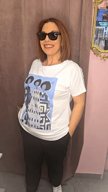 Γυναικείο T-Shirt με Γαλάζιο & Μεταλλικό Print