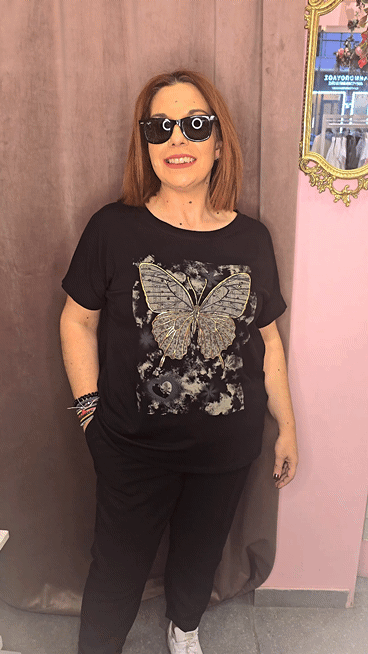 ΕξαντλήθηκεΓυναικείο T-Shirt με Πεταλούδα Print Μαύρο-Χρυσό
