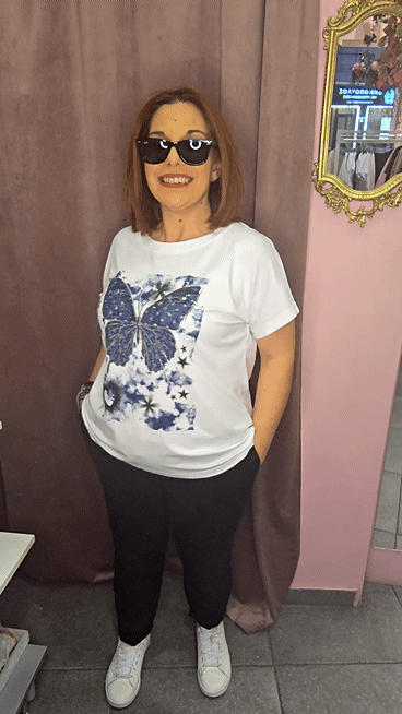 Γυναικείο T-Shirt με Πεταλούδα Print Άσπρη-Μωβ