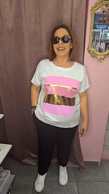 ΕξαντλήθηκεΓυναικείο T-Shirt με Ροζ & Χρυσό Print