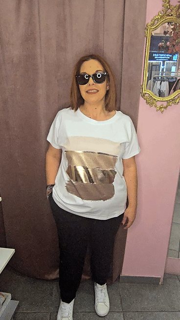 ΕξαντλήθηκεΓυναικείο T-Shirt με Χρυσό Μεταλλικό Print