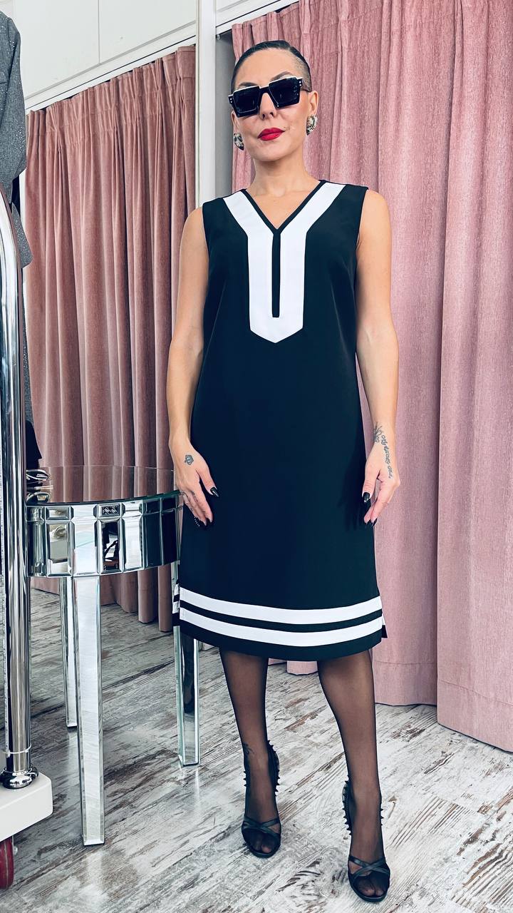Αμάνικο φόρεμα σε ίσια γραμμή με λευκή λεπτομέρεια