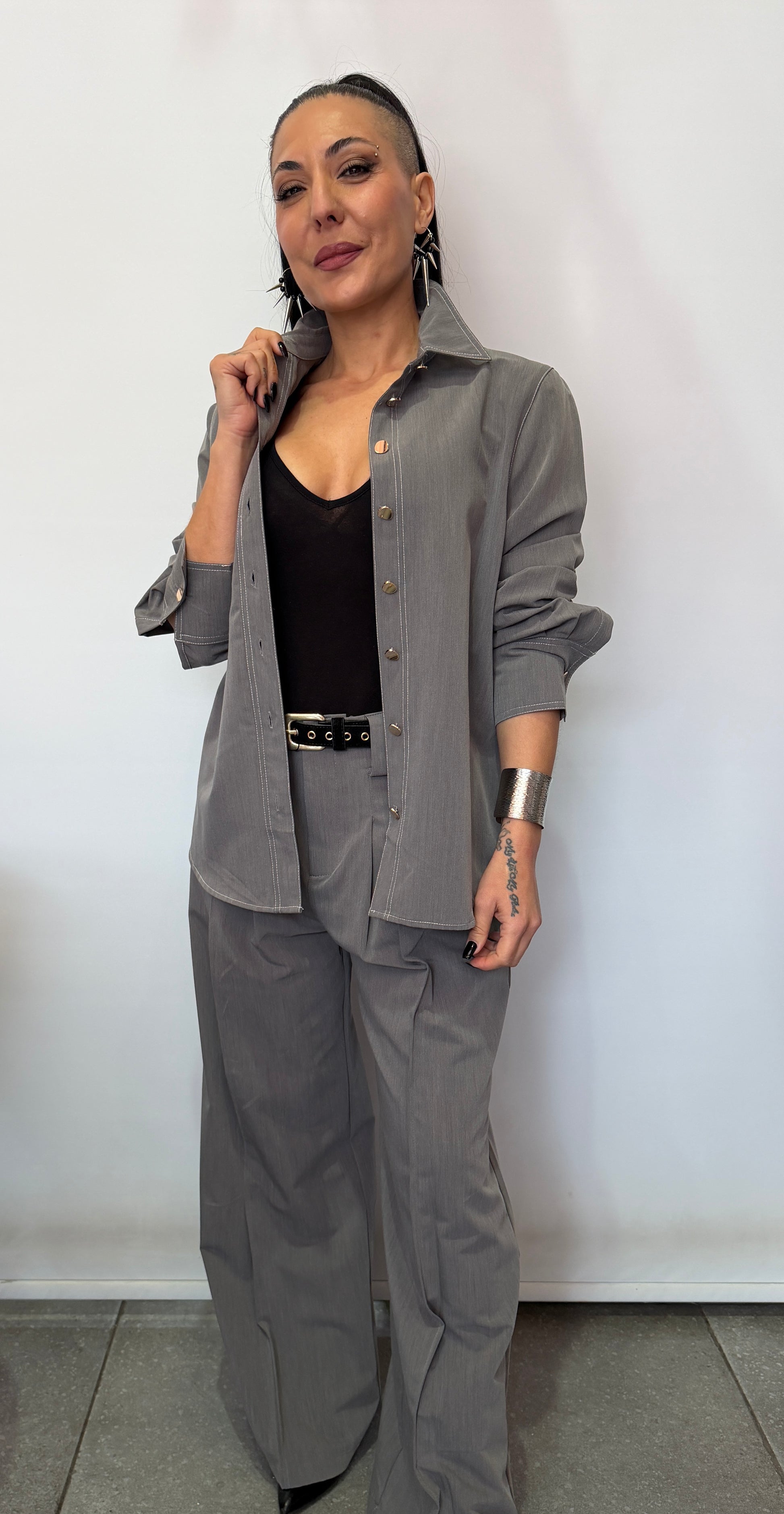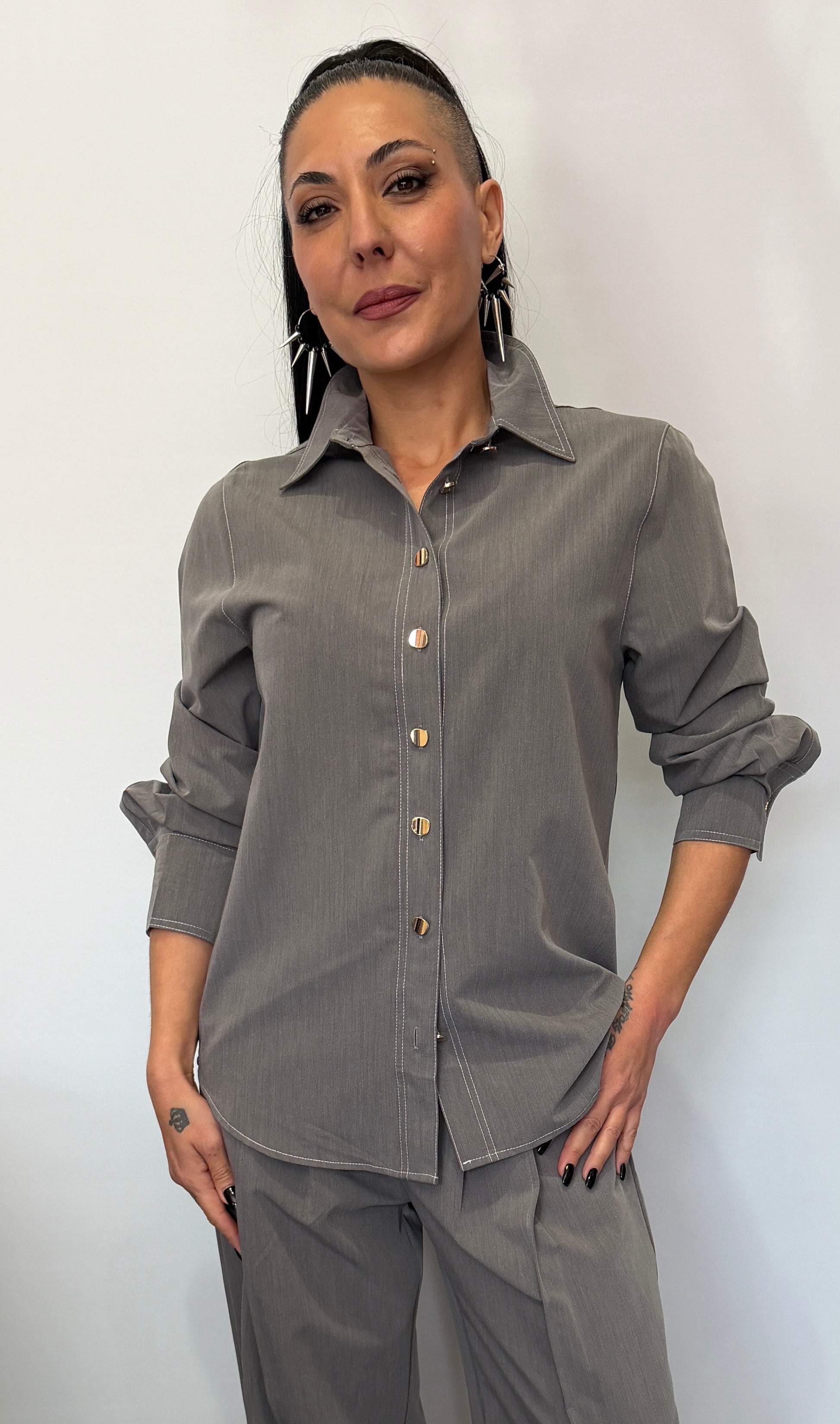 Γυναικείο Πουκάμισο με Διακοσμητικά Κουμπιά Γκρι-1