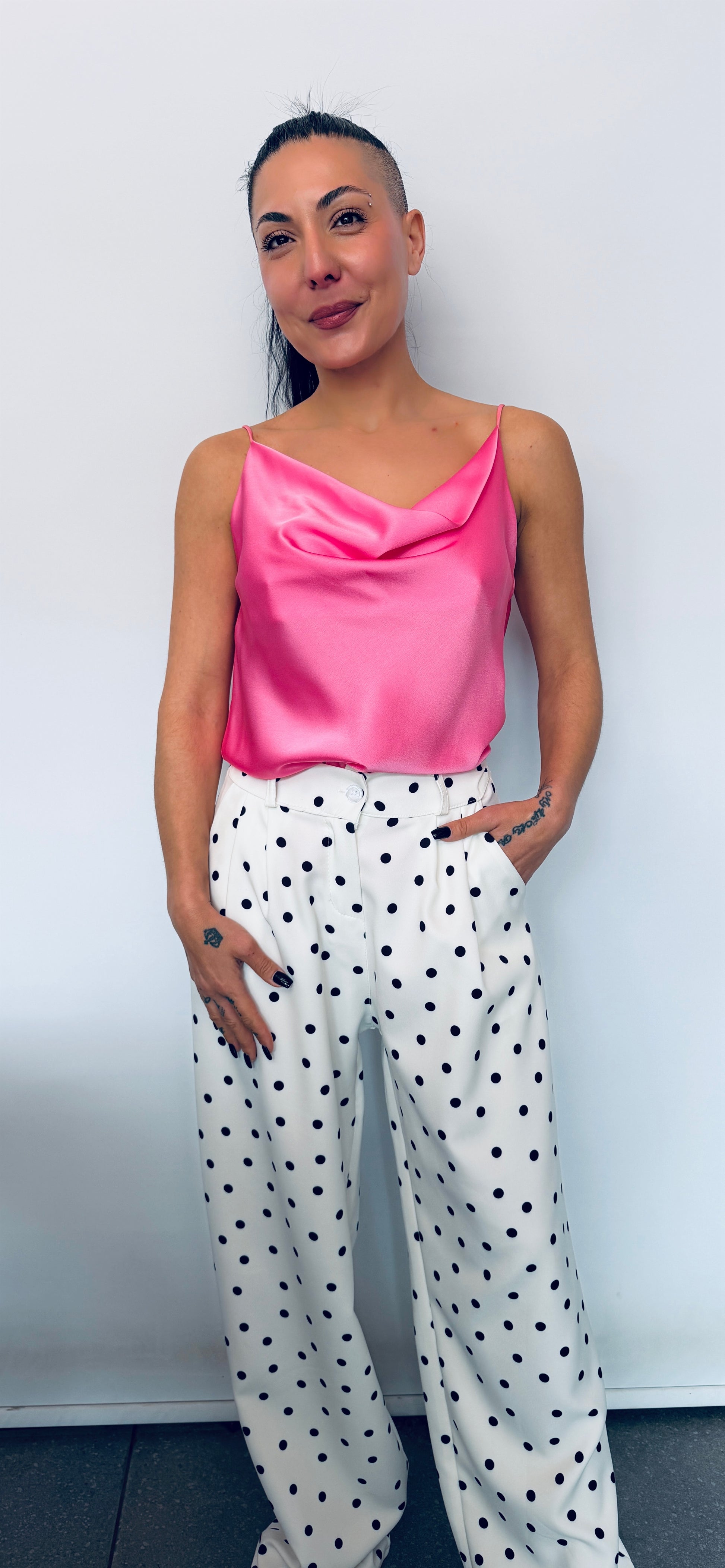 Κομψό γυναικείο top με ντραπέ λαιμόκοψη που προσδίδει θηλυκότητα και διαχρονική κομψότητα. Οι λεπτές τιράντες χαρίζουν μία ανάλαφρη και elegant αισθητική, ιδανική για κάθε περίσταση.