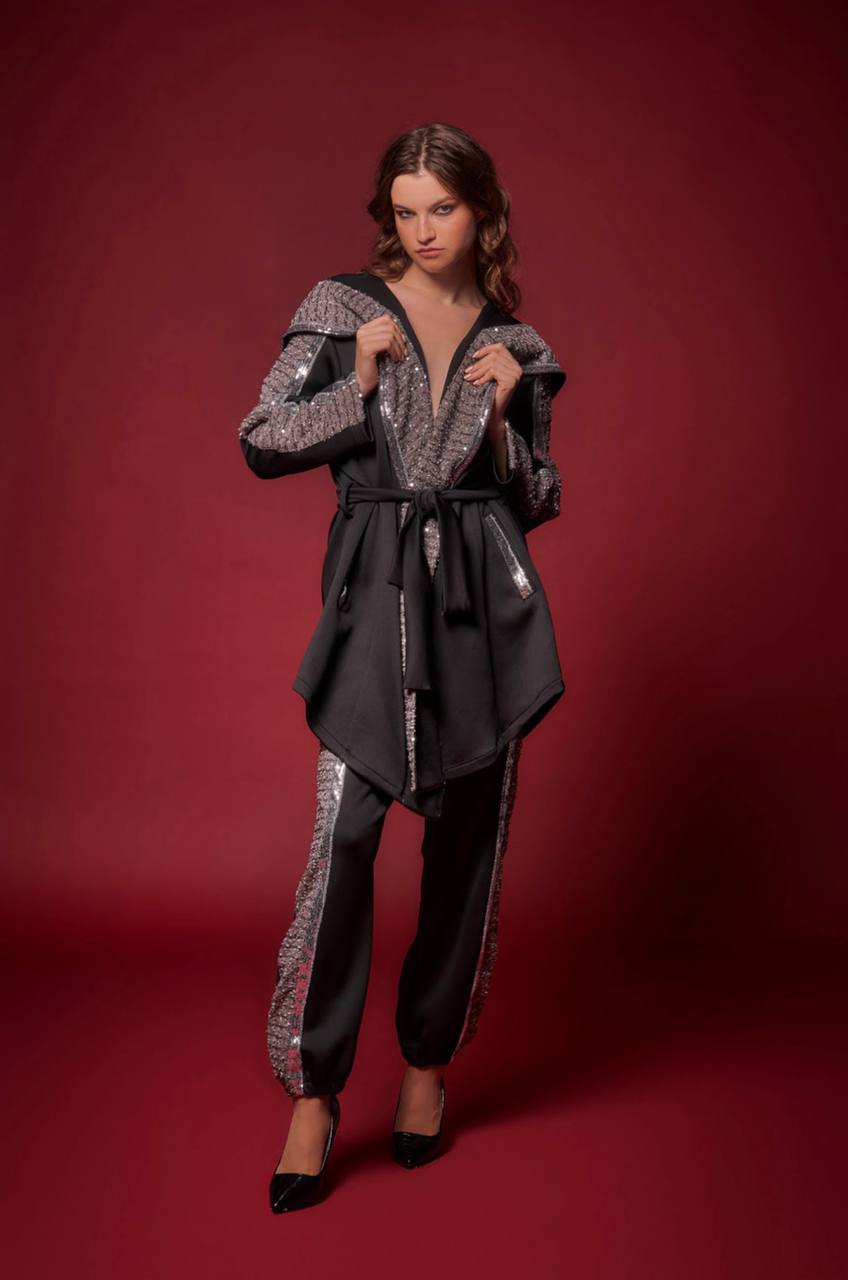 Λεπτομέρειες στον γιακά, στα μανίκια & στις τσέπες, με ασημένιες πούλιες