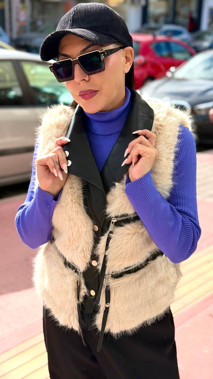 Ιδιαίτερο γιλέκο με δερμάτινη και γούνα