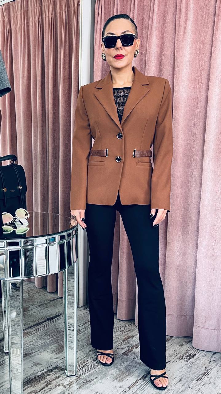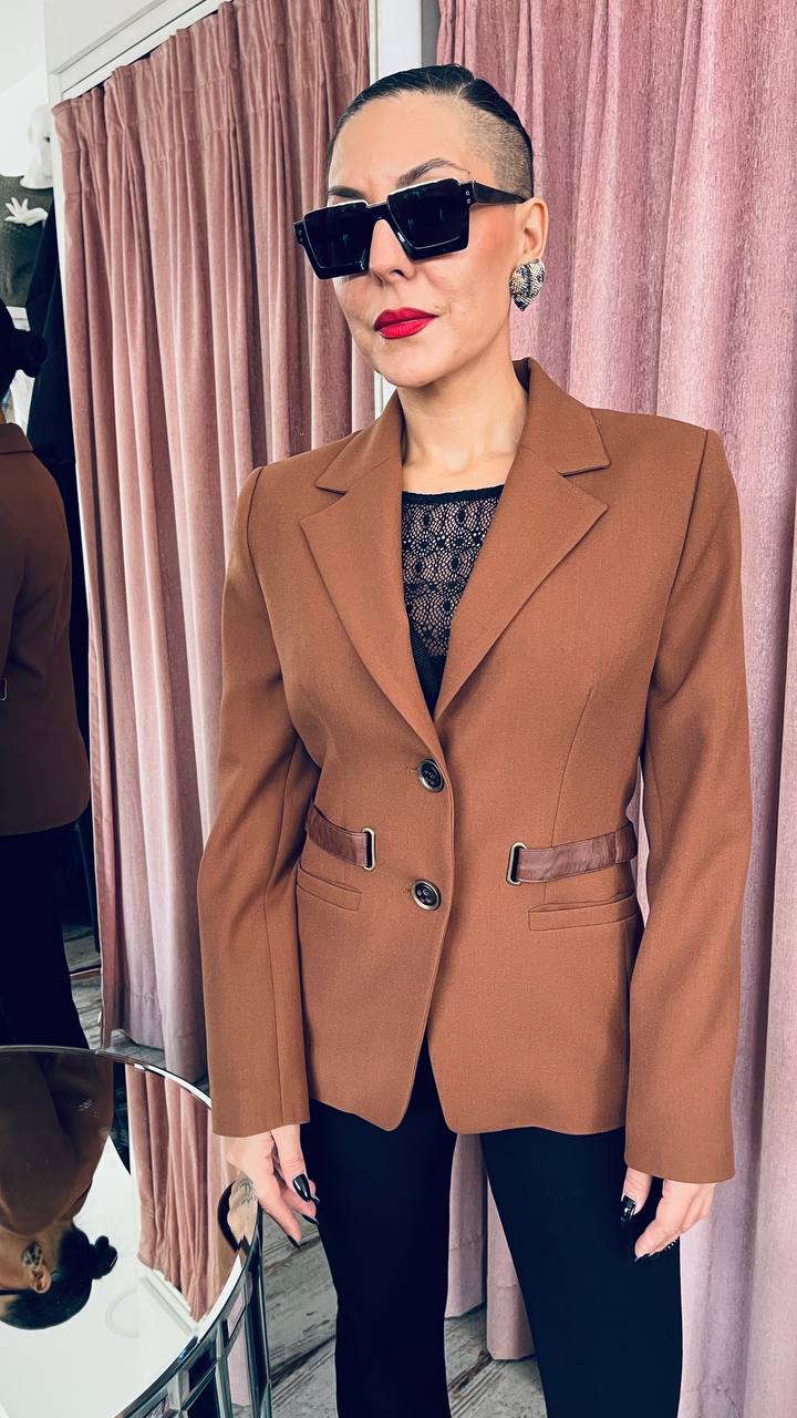 Σακάκι ταμπα με δερμάτινες λεπτομέρειες στις τσέπες