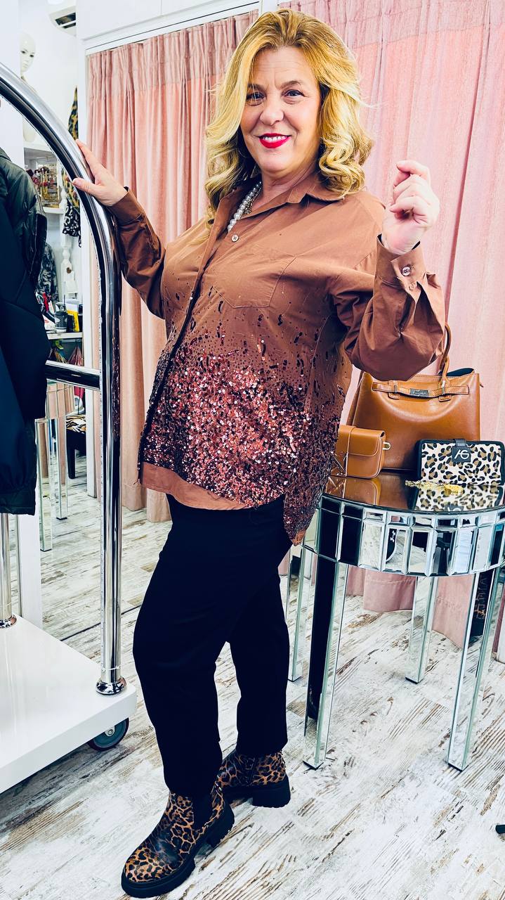 πουκάμισο με λεπτομέρειες χάντρες καφε -1
