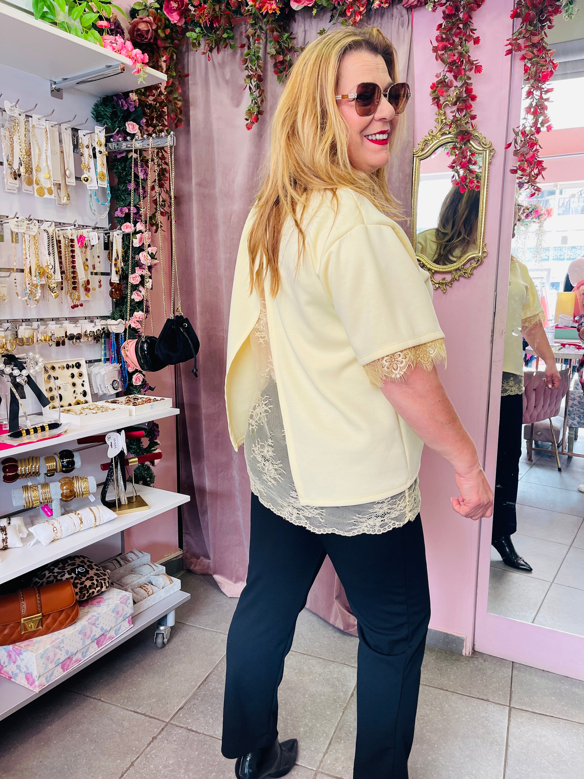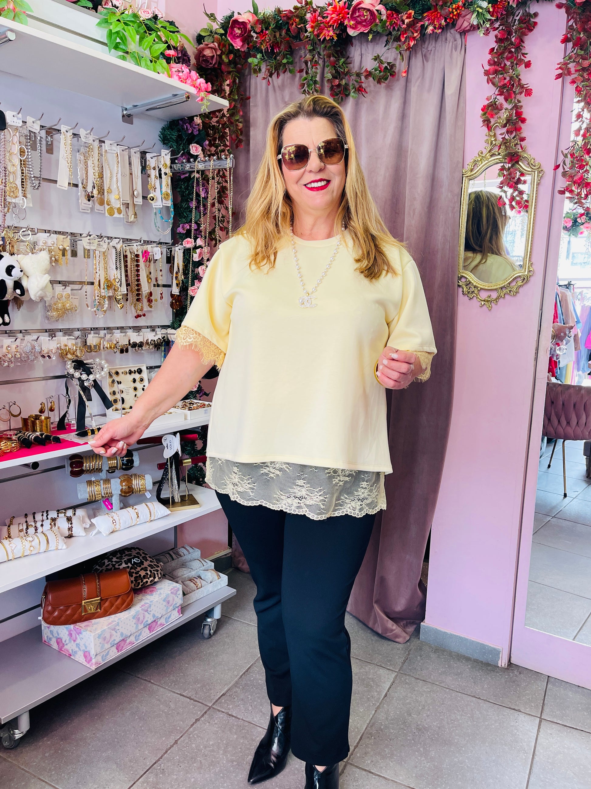 Μπλούζα με Δαντέλα & Ανοιχτή Πλάτη Κίτρινο-2