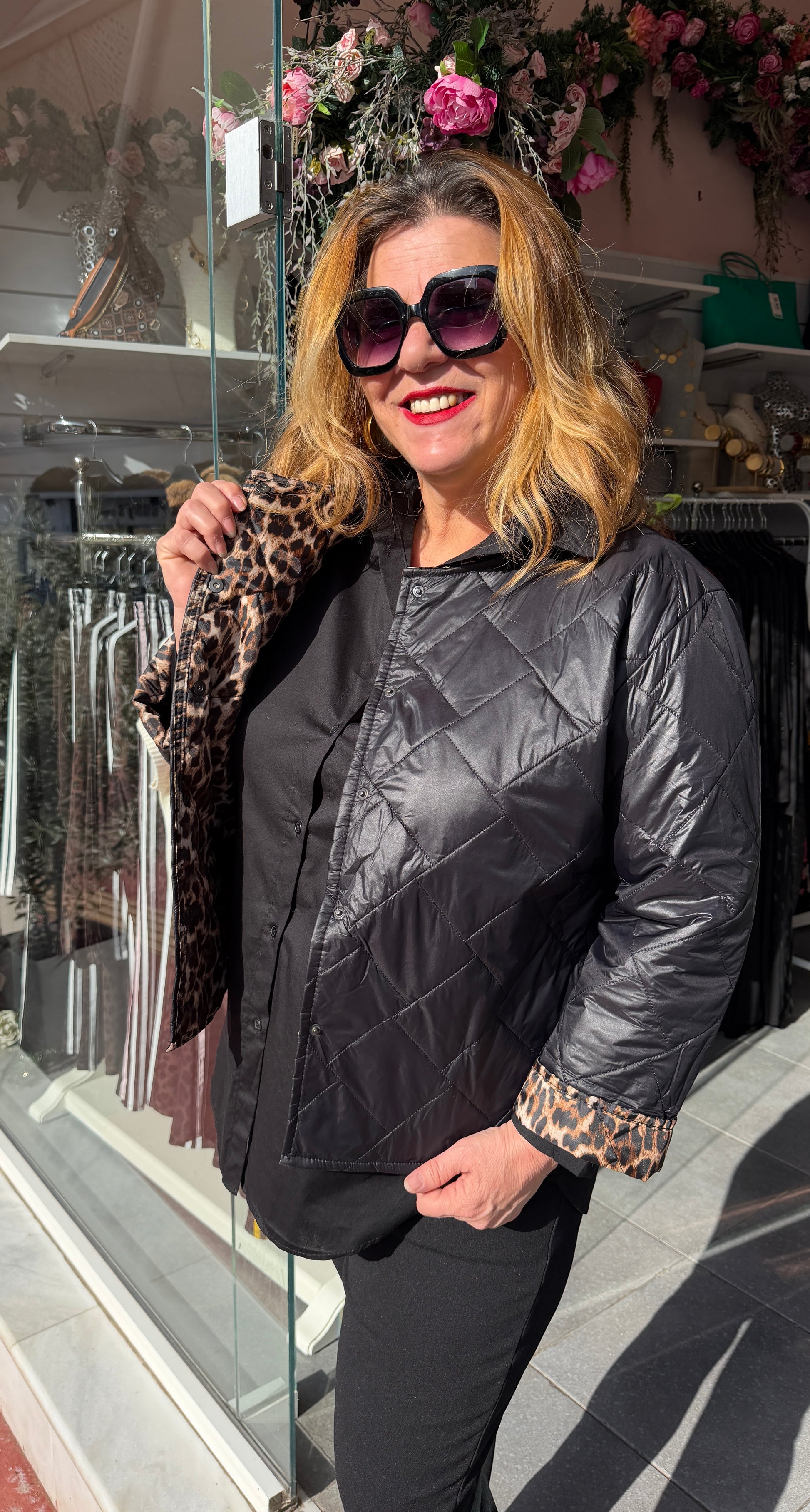 Μπουφάν καπιτονέ με animal print Μαύρο-3