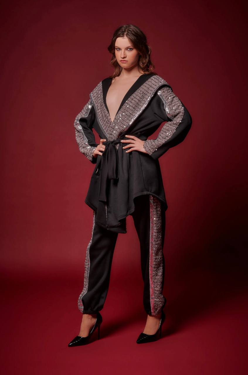 Λεπτομέρεια στις τσέπες και στα πλαϊνά του με ασημένιες πούλιες