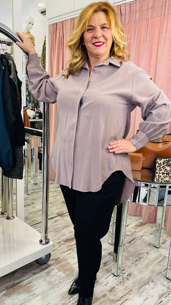 Καφέ πουκαμήσα με 87% viscoze με κρυφά κουμπιά