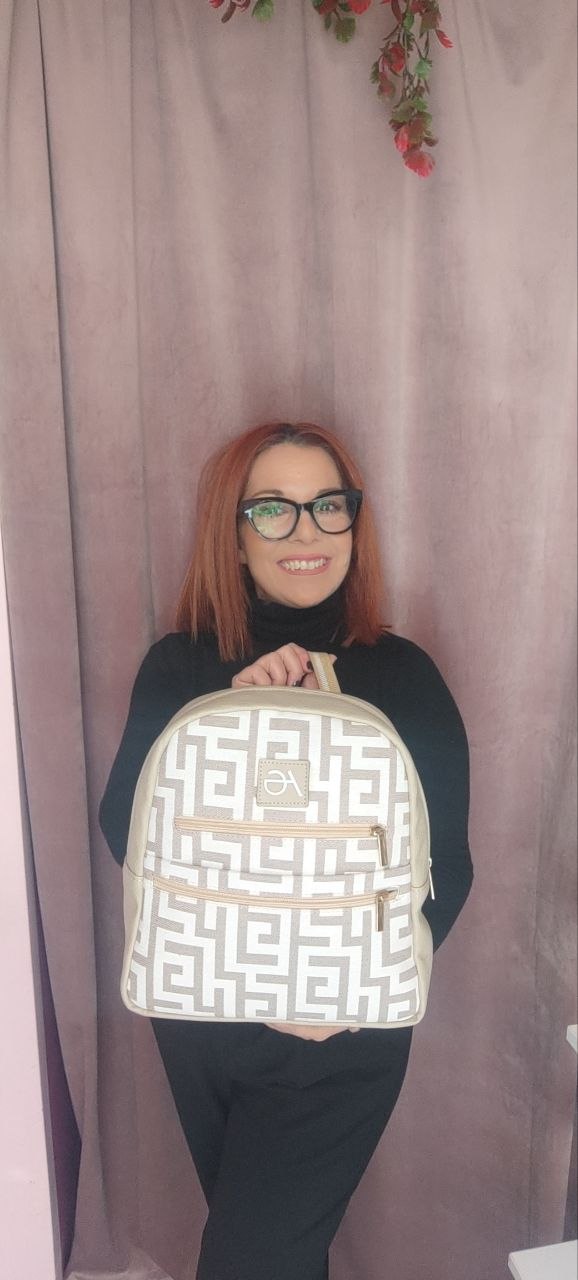 Σακίδιο πλάτης της εταιρείας Αri Gorgio , χειροποίητο με σχέδιο Μαίανδρο και διπλό φερμουάρ.