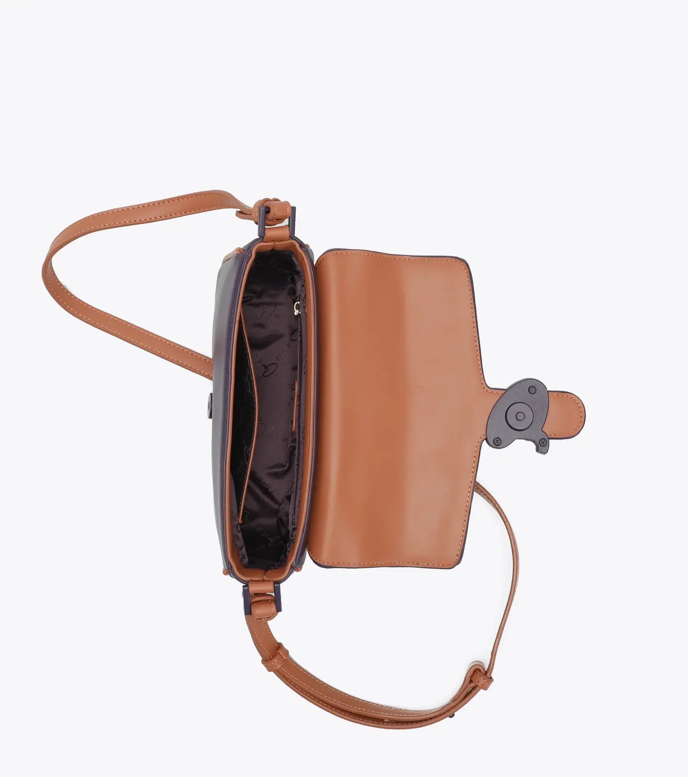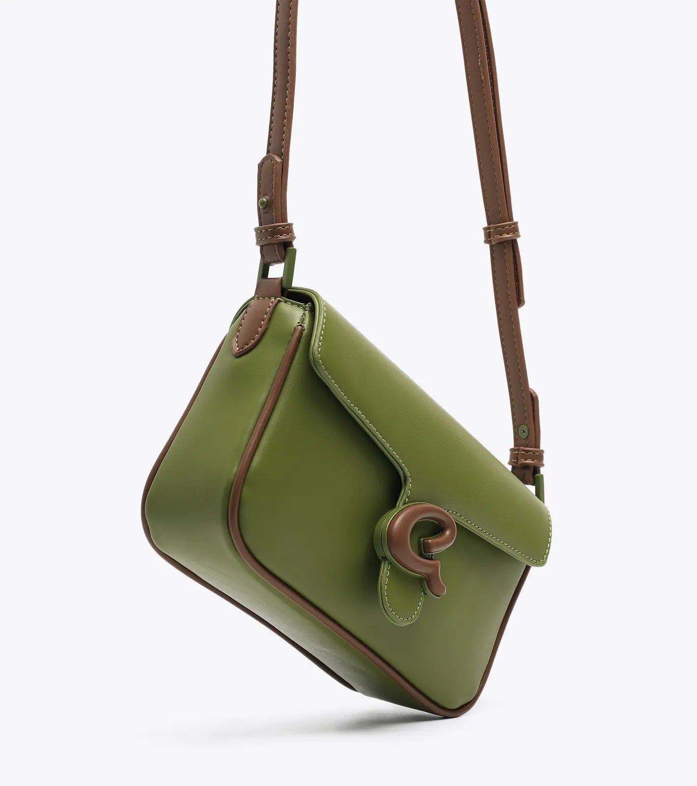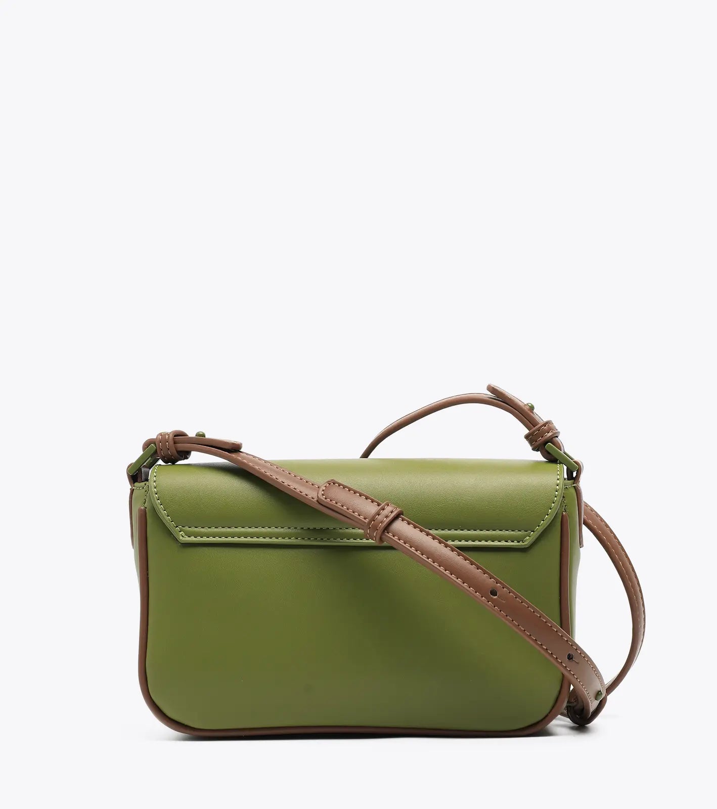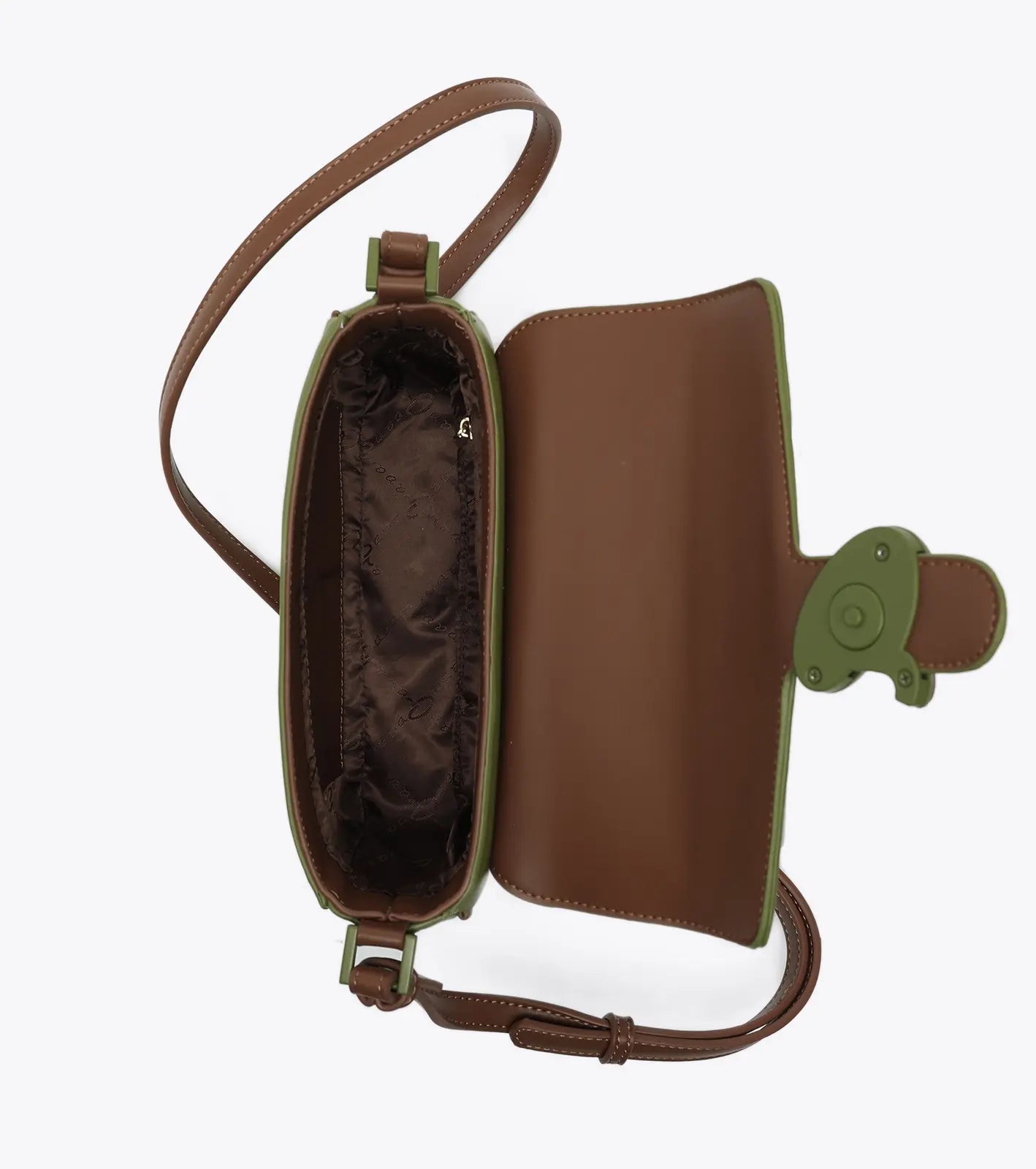 Τσάντα χιαστί μοντέρνας και εκλεπτυσμένης εμφάνισης, κατασκευασμένη από ανακυκλωμένο τεχνόδερμα. Κλείνει με καπάκι με χαρακτηριστικό κούμπωμα το λογότυπο 'a', προσφέροντας ασφάλεια και στυλ. Διαθέτει κοντό έξτρα λουράκι, επιτρέποντας τη χρήση της και ως τσάντα ώμου για μεγαλύτερη ευελιξία. Εσωτερικά, είναι πλήρως φοδραρισμένη και περιλαμβάνει μια τσέπη με φερμουάρ και μια ανοιχτή θήκη για εύκολη οργάνωση των αντικειμένων σας. Ιδανική για καθημερινή χρήση, συνδυάζει την πρακτικότητα με την κομψότητα σε κάθε σας εμφάνιση.