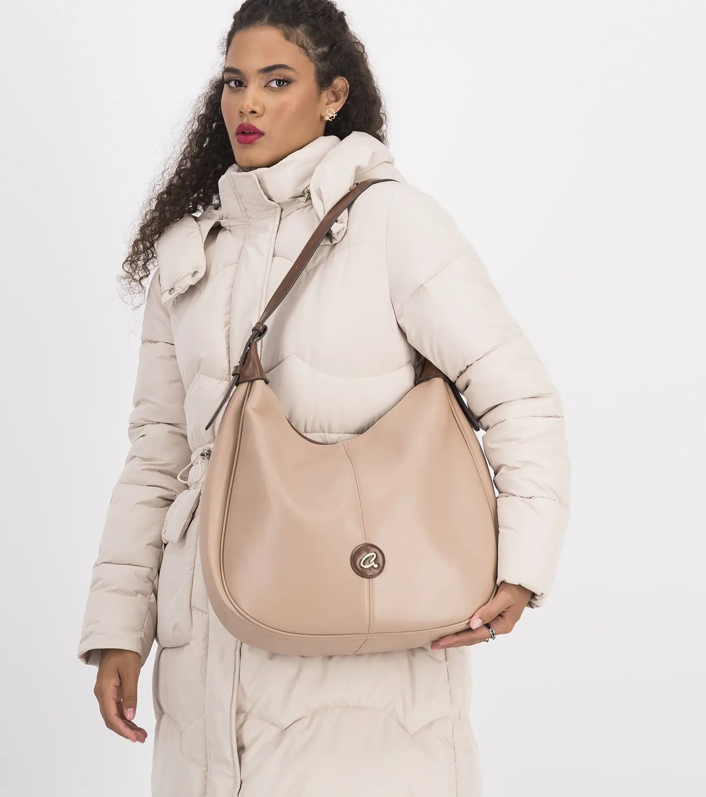 Γυναικεία τσάντα ώμου Phyllis, κατασκευασμένη από υψηλής ποιότητας τεχνόδερμα. Διαθέτει λιτό και μοντέρνο σχεδιασμό με στρογγυλεμένο σχήμα. Το λουράκι ώμου είναι ρυθμιζόμενο, για να φοριέται και χιαστί. Διαθέτει κλείσιμο με φερμουάρ στην κορυφή για ασφάλεια και μια ευρύχωρη εσωτερική διάταξη με τσέπη με φερμουάρ και ανοιχτές θήκες για την καλύτερη οργάνωση των αντικειμένων σας. Με διακοσμητικό λογότυπο 'a'. Μία κομψή και πρακτική τσάντα ώμου για τη σύγχρονη γυναίκα, ιδανική για καθημερινή χρήση.