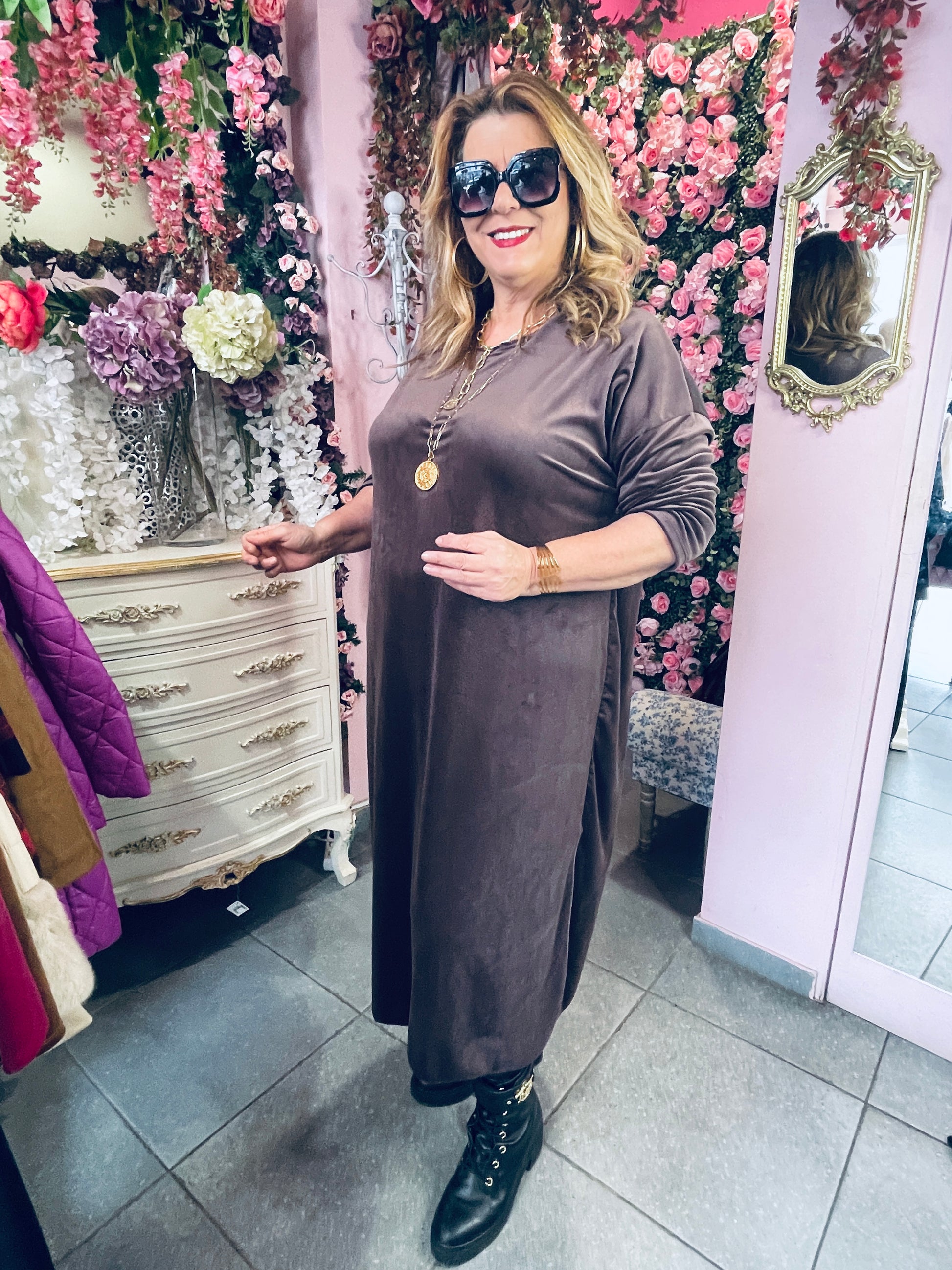 Υπέροχο Velvet φόρεμα Καφέ-6