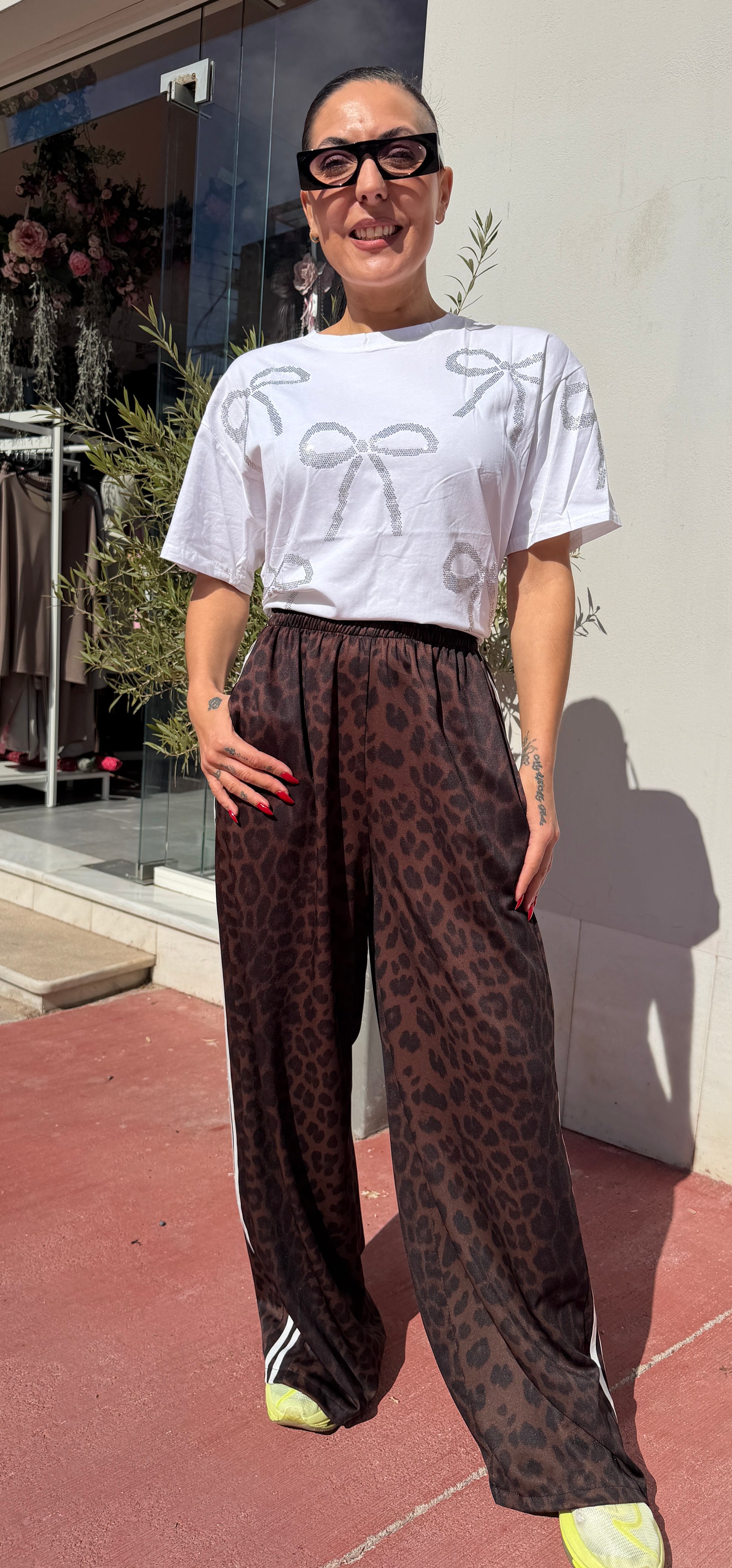 Φόρμα Jaguar print με ασπρι ριγα στα πλαϊνά και ισια γραμμή.