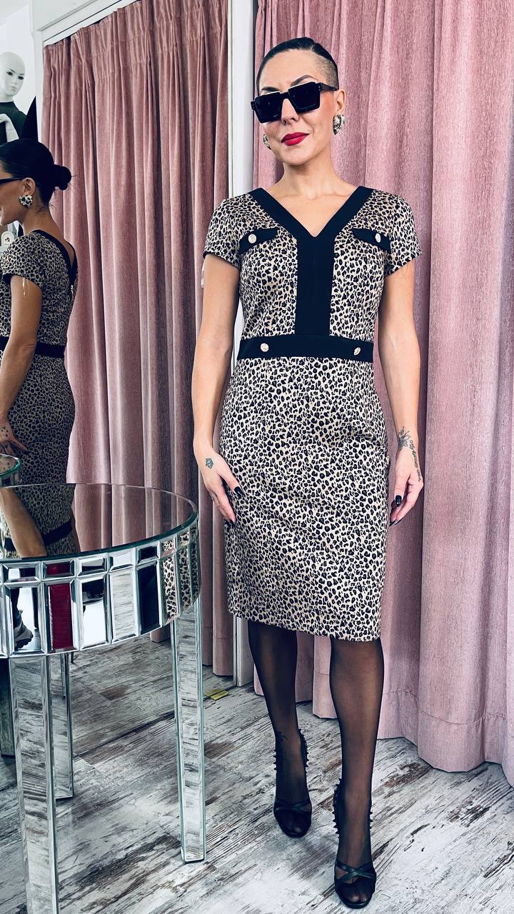 Vagias Φόρεμα αμάνικο λεοπάρ σε ίσια γραμμή Ελληνικής βιοτεχνίας