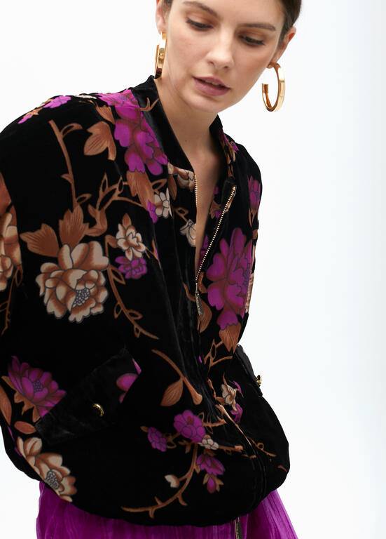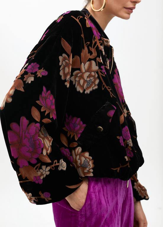 Βελούδινο bomber φλοραλ, με εσωτερική φόδρα