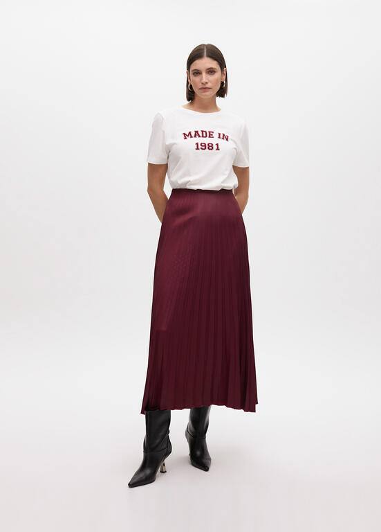 Βαμβακερή κοντομάνικη μπλούζα με ανάγλυφο μπορντώ τύπωμα και λεπτομέρεια στρασακια