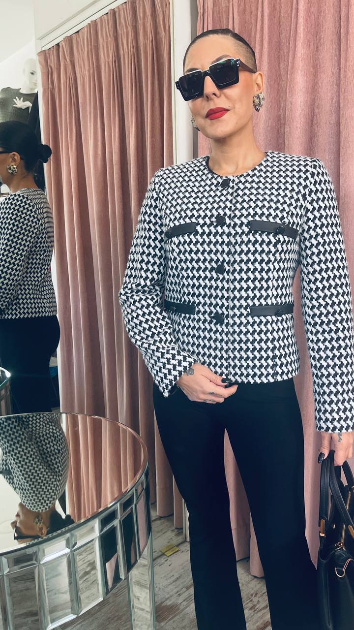 Σακάκι pie de poul με δερμάτινες λεπτομέρειες